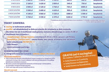 * Niewykorzystanie któregokolwiek elementu wchodzącego w skład ceny nie powoduje zmniejszenia jego wartości. *Hotel zastrzega sobie prawo modyfikacji oferty.
