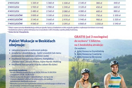 - zakwaterowanie zgodnie z wybrana opcją pokoju - minimum 3 noclegi